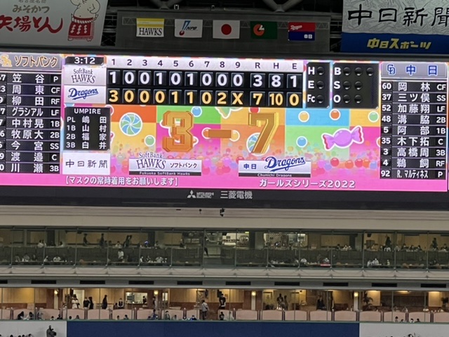 今日はバンテリンドーム行きました。